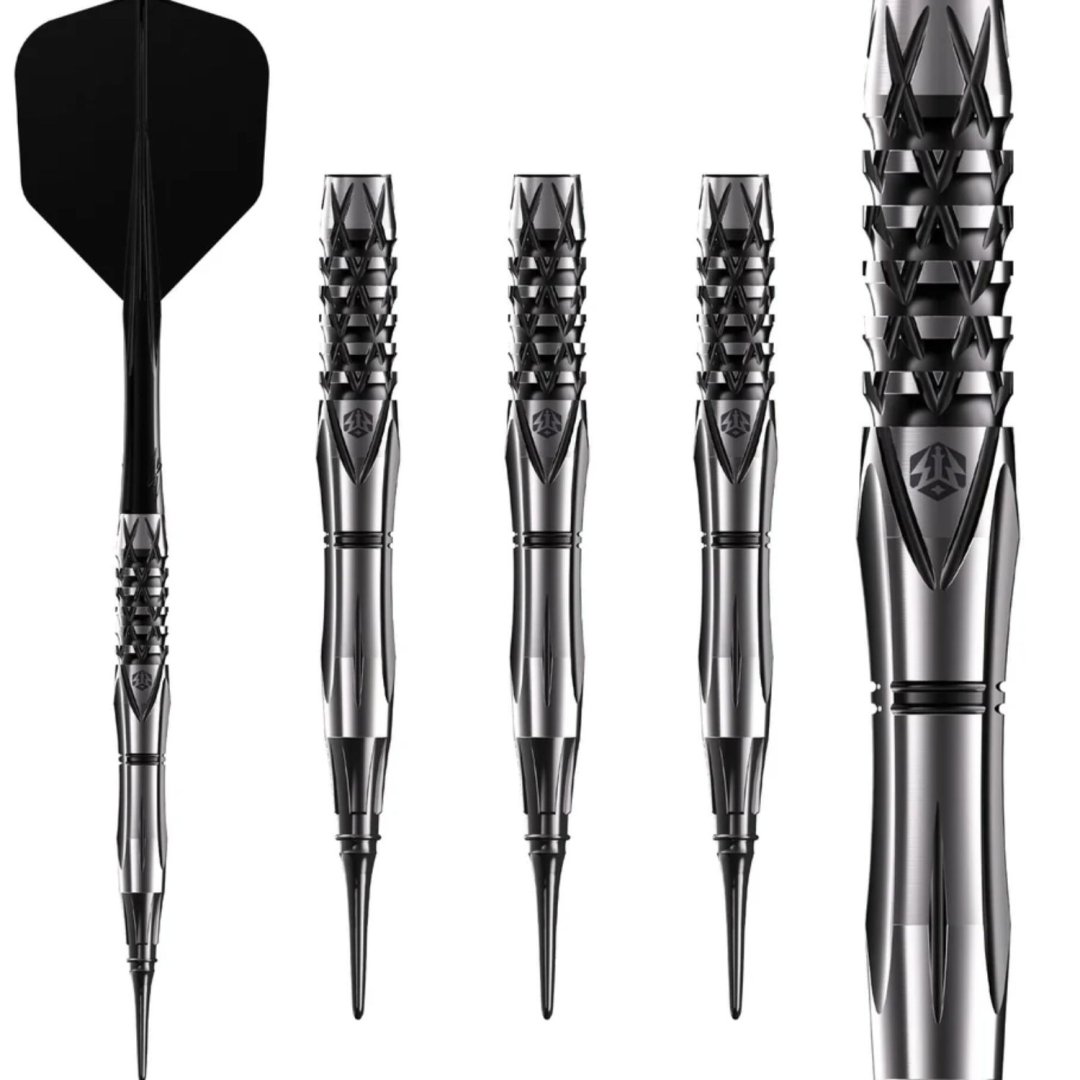 Softové šípky Caliburn Sword sú volfrámové šípky (95% tungsten) v úchvatnom dizajne. Tmavé barrely majú unikátne drážkovanie a skvele padnú do ruky.
