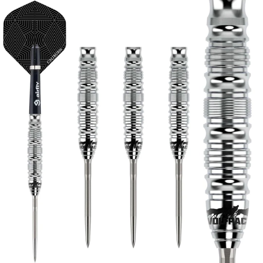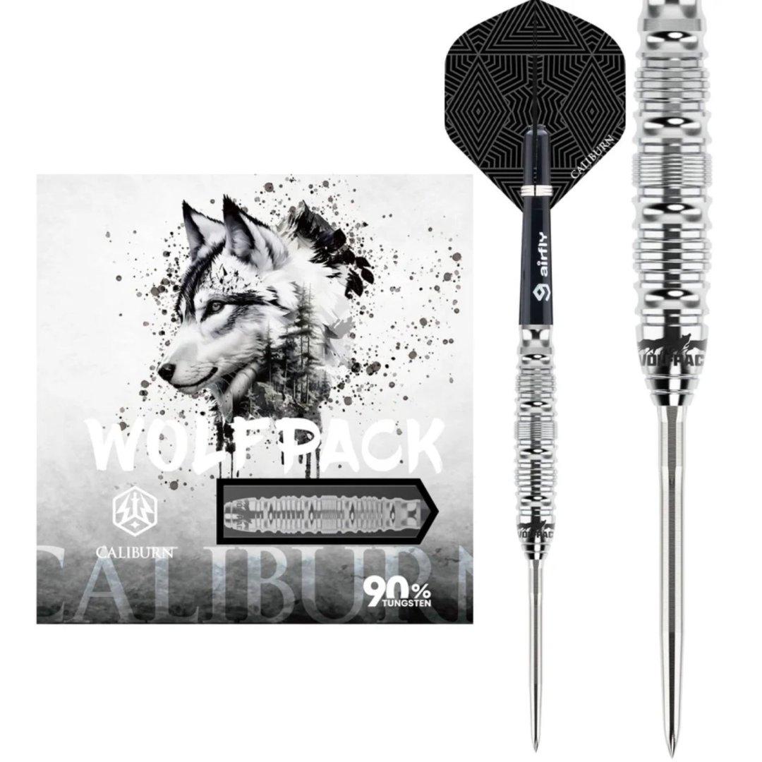 Steelové šípky Caliburn Wolfpack sú volfrámové šípky (90% tungsten) s barrely v originálnom dizajne.. Barrely sú doplnené nylonovými násadkami a letkami Caliburn. Šípky majú vymeniteľný systém hrotov Caliburn Replaceable Point System. Dodávajú sa aj s kľúčom na výmenu hrotov Caliburn (X1997).