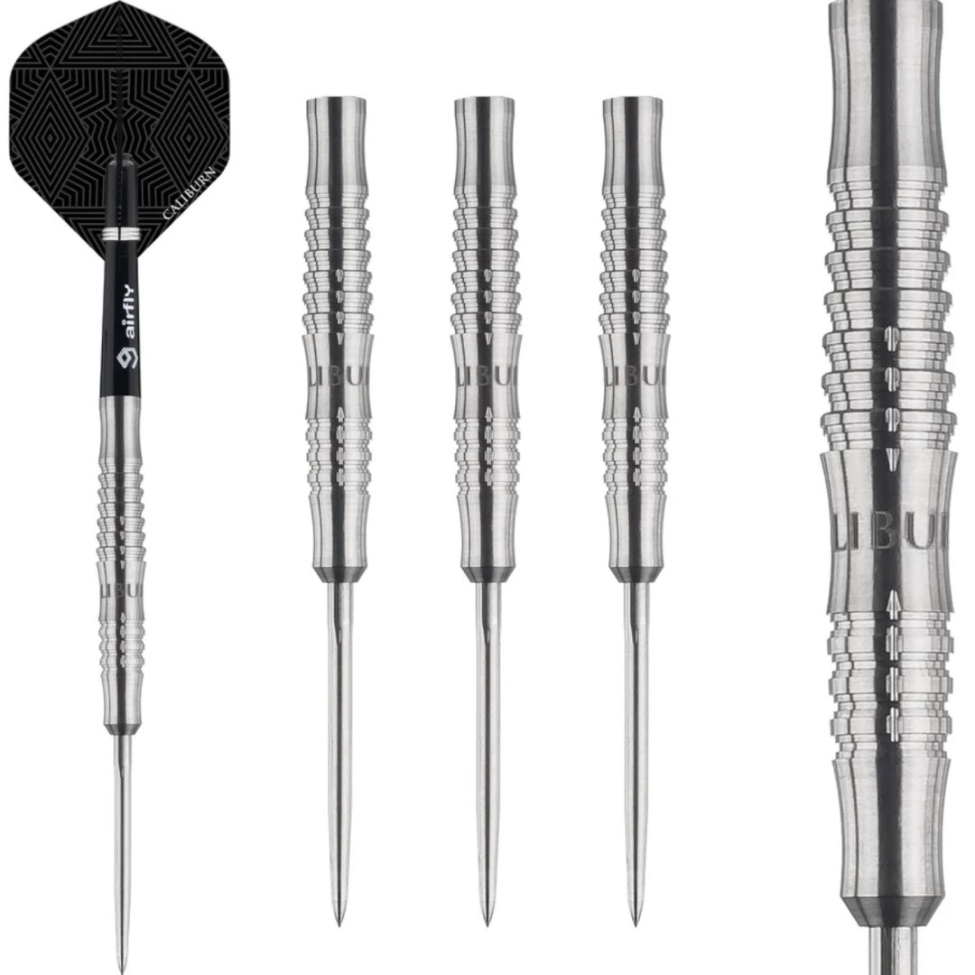 Steelové šípky Caliburn Hunt sú volfrámové šípky (90% tungsten) s barrely v elegantnom dizajne. Barrely sú doplnené nylonovými násadkami a letkami Caliburn. Šípky majú vymeniteľný systém hrotov Caliburn Replaceable Point System. Súčasťou balenia NIE JE kľúč na výmenu hrotov Caliburn (X1997).