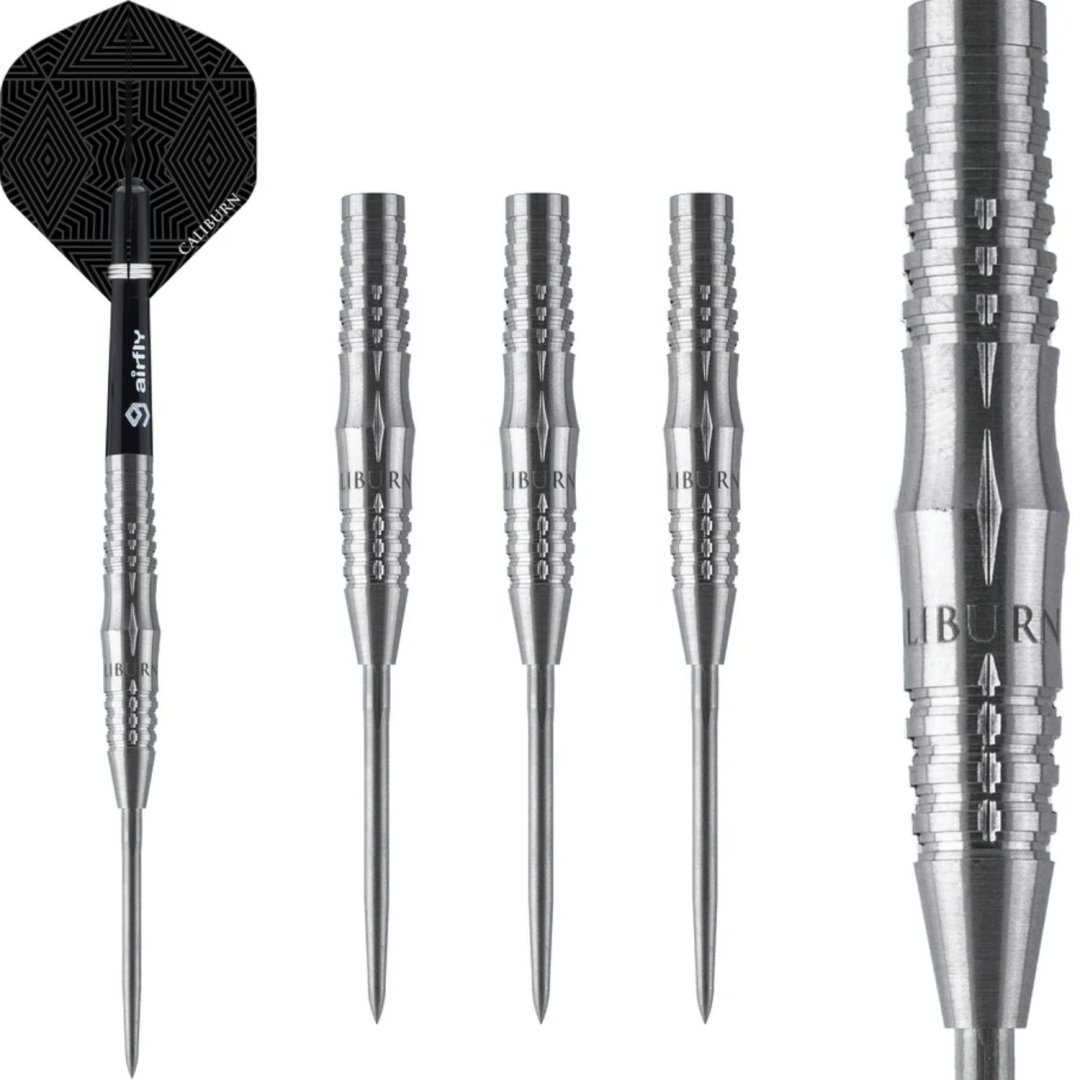 Steelové šípky Caliburn Hunt sú volfrámové šípky (90% tungsten) s barrely v elegantnom dizajne. Barrely sú doplnené nylonovými násadkami a letkami Caliburn. Šípky majú vymeniteľný systém hrotov Caliburn Replaceable Point System. Súčasťou balenia NIE JE kľúč na výmenu hrotov Caliburn (X1997).