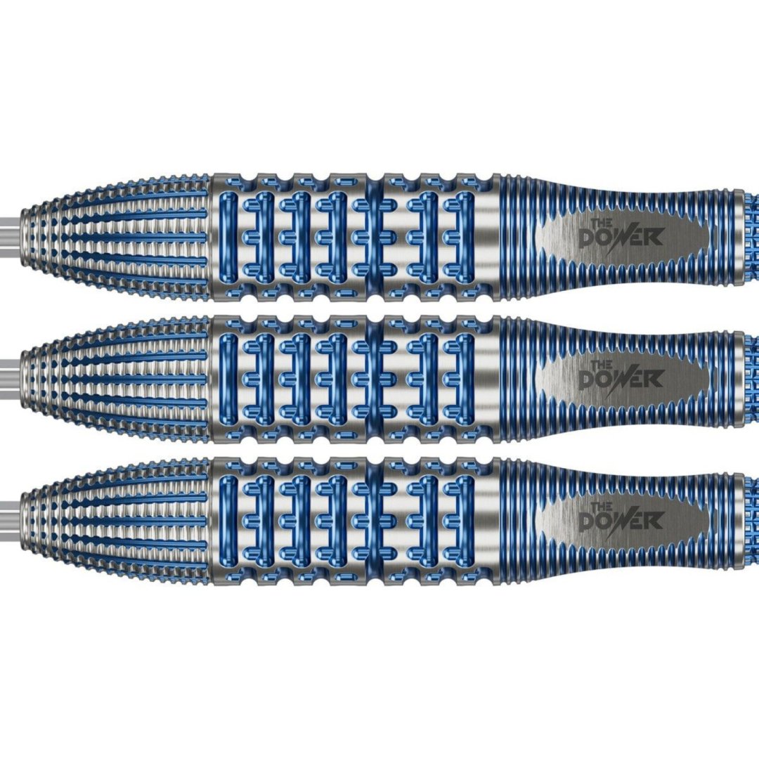 Steelové šípky Phil Taylor Power Gx2 sú volfrámové šípky (95% tungsten) s jedinečným dizajnom. Barrel má torpédový tvar, Quattro grip a drážky zvýraznené modrou farbou.