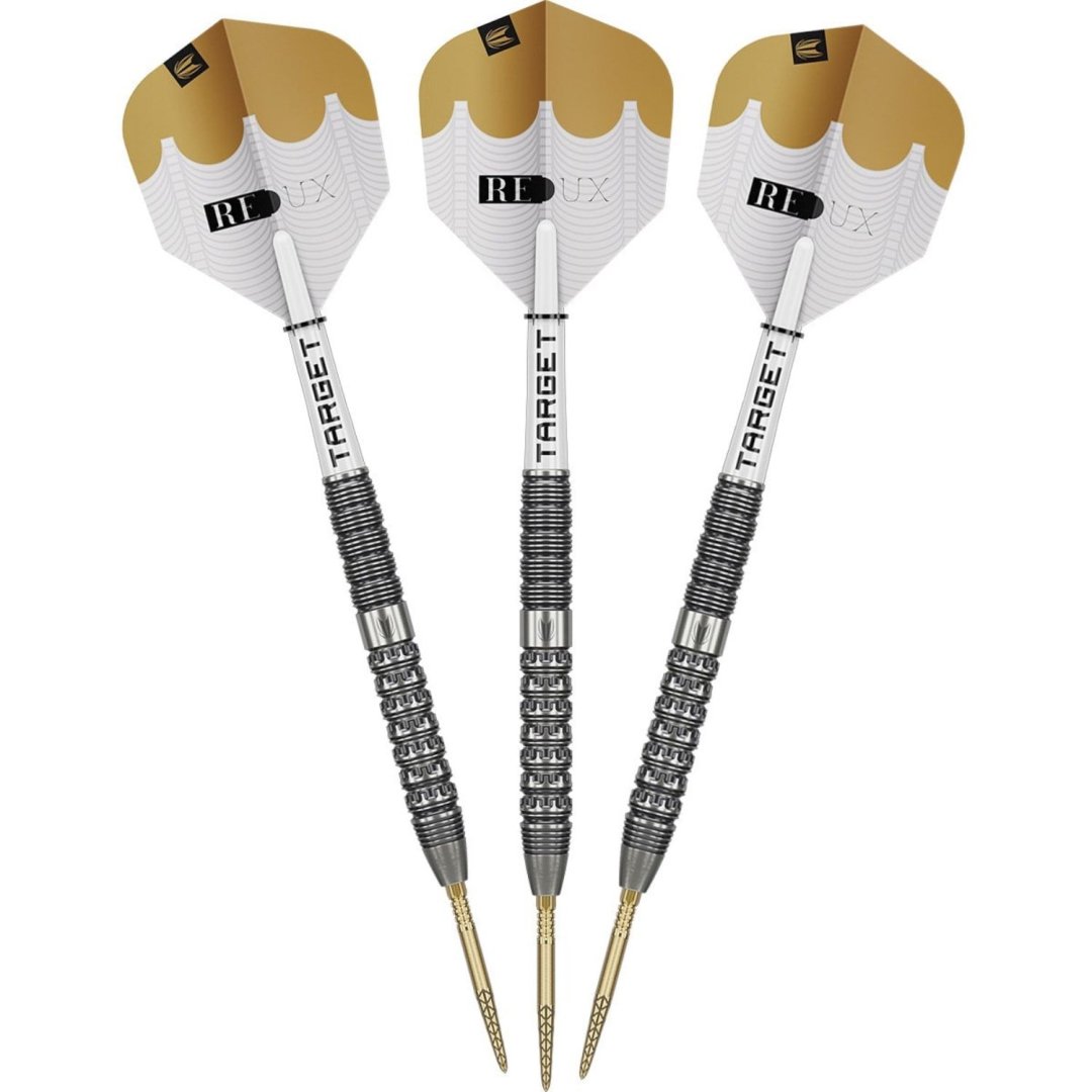 Steelové šípky Target Redux sú unikátne volfrámové šípky (90% tungsten) s úžasným dizajnom. Barrely sú doplnené nylonovými násadkami, letkami Redux a hrotmi Swiss Point. Súčasťou balenia je aj nástroj na výmenu hrotov Swiss Point
