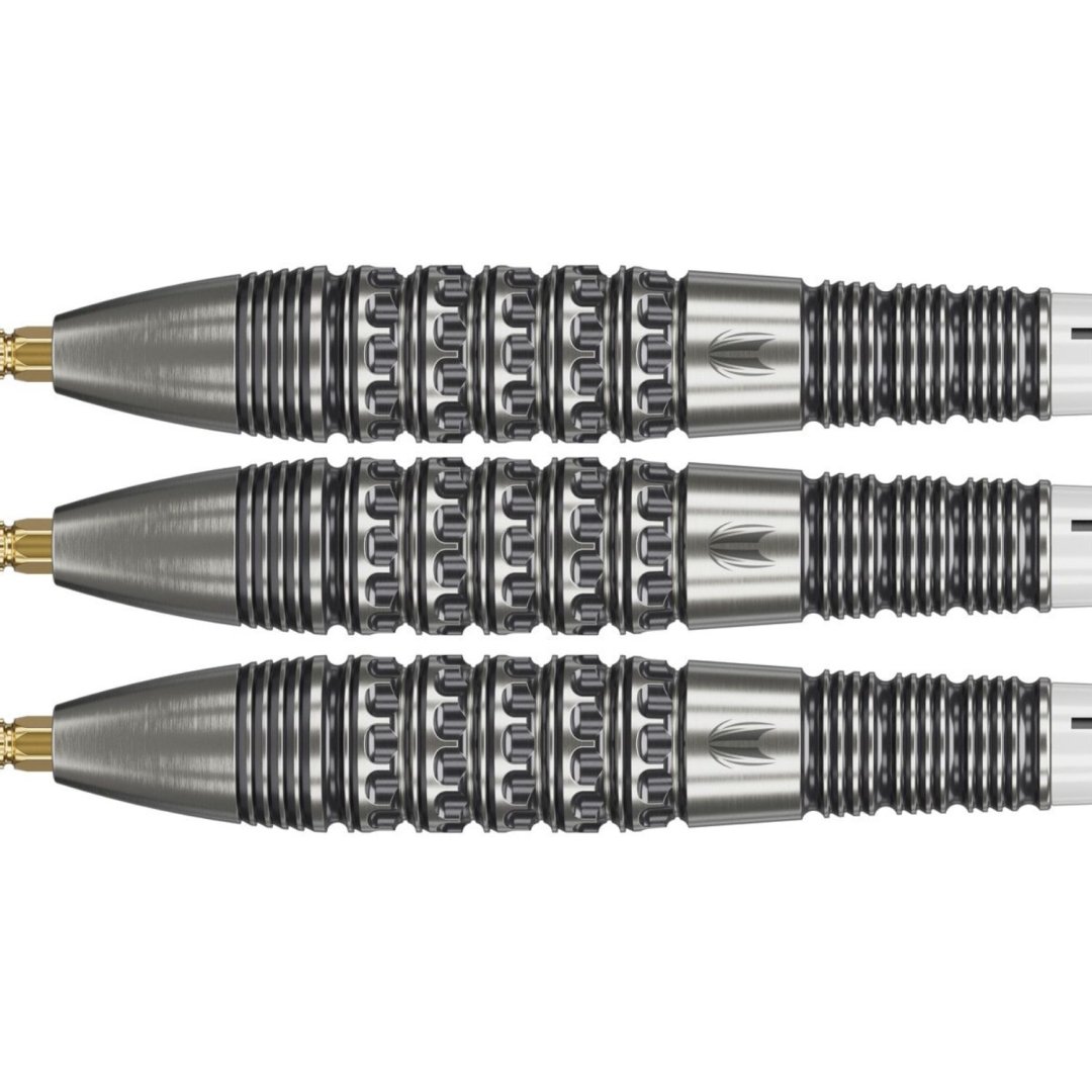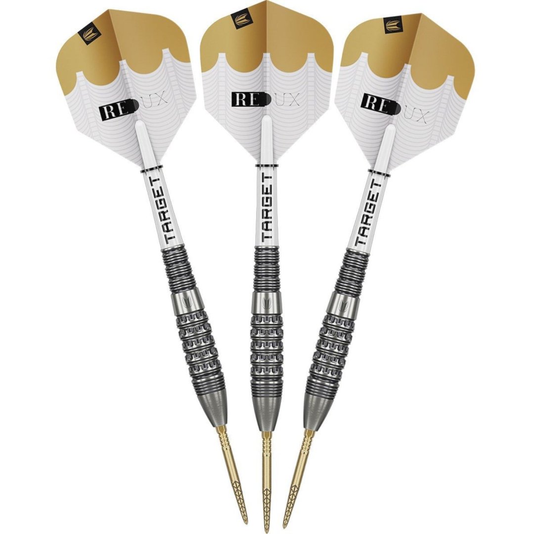 Steelové šípky Target Redux sú unikátne volfrámové šípky (90% tungsten) s úžasným dizajnom. Barrely sú doplnené nylonovými násadkami, letkami Redux a hrotmi Swiss Point. Súčasťou balenia je aj nástroj na výmenu hrotov Swiss Point