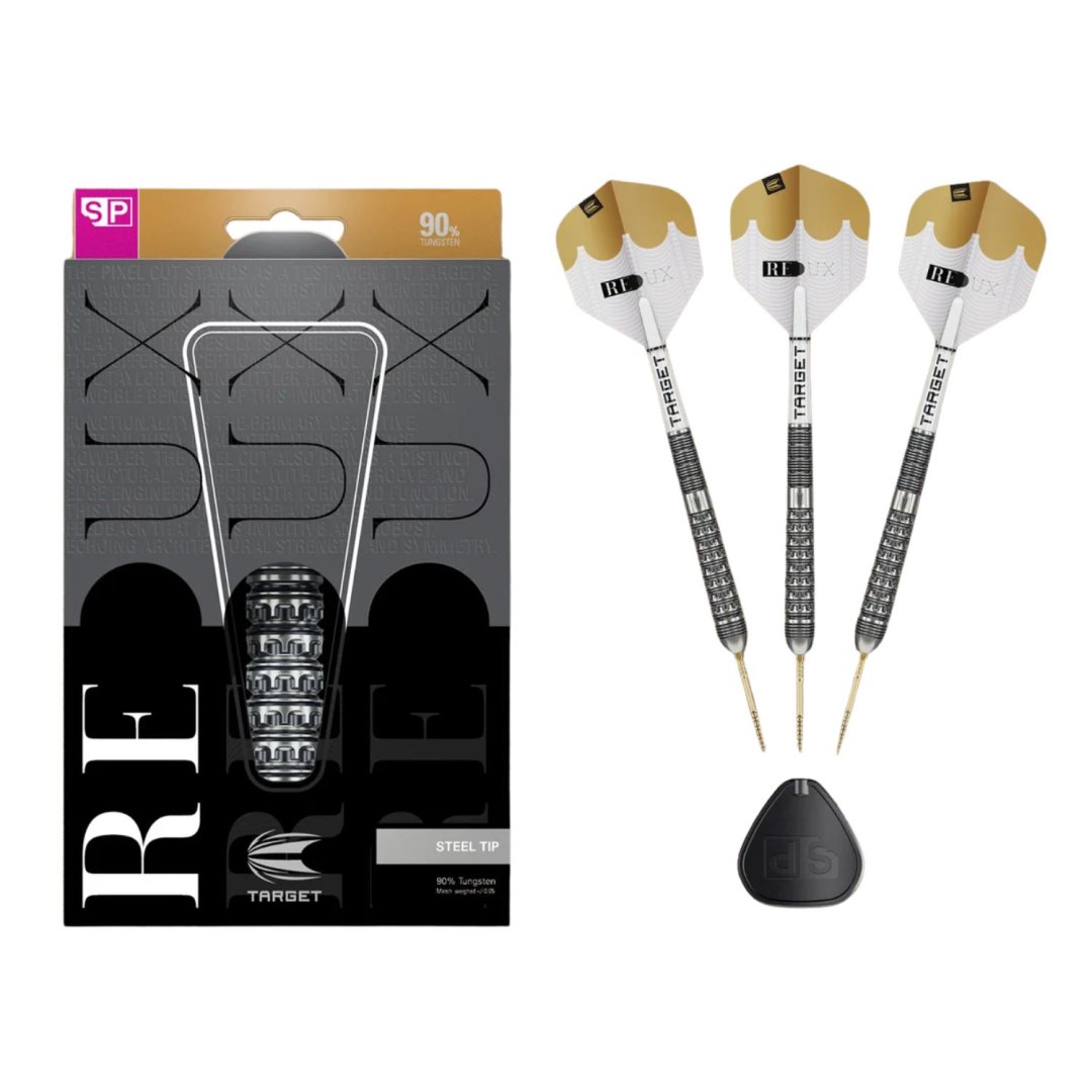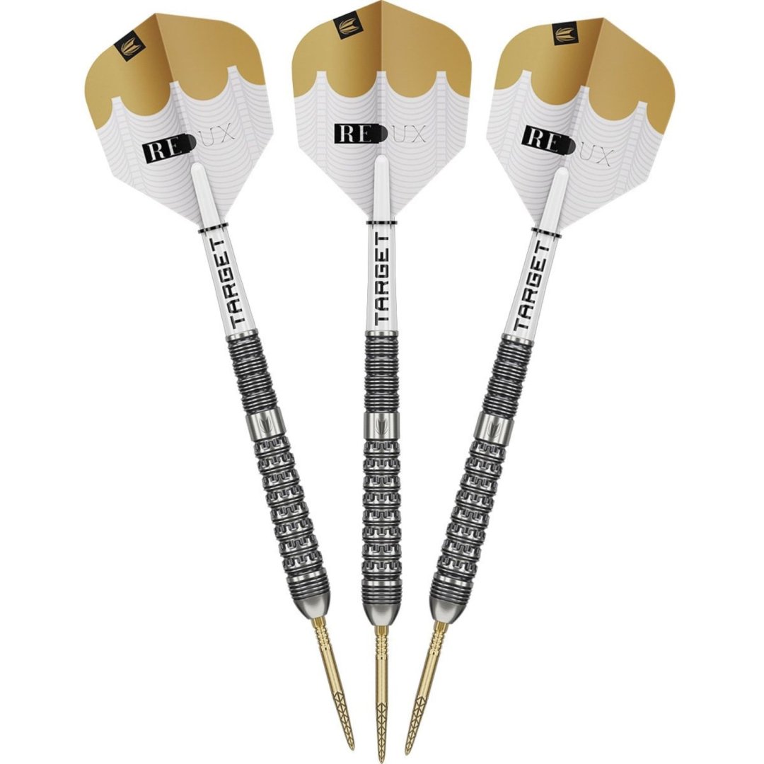 Steelové šípky Target Redux sú unikátne volfrámové šípky (90% tungsten) s úžasným dizajnom. Barrely sú doplnené nylonovými násadkami, letkami Redux a hrotmi Swiss Point. Súčasťou balenia je aj nástroj na výmenu hrotov Swiss Point